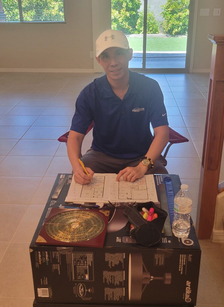 2016年建八运子山午向兼壬丙,今天受邀请来到凤凰城吉尔伯特市一栋两层别墅看风水。女主属鼠,此屋刚好旺属鼠的人。屋子最大的缺点是中心点在楼梯旁边的储物房里面,这样会扰乱阴阳交媾的核心气场,中五立极,临制四方,时间长了,男主人会觉得办事艰难,教会了他们解决方案,希望能早日顺利实施!另外,建议他们把申位出卦的炉灶挪到庚位,然后在酉位安装水池摧财,车库的热水炉在五黄大凶位也要调整。电视机放在西北乾宫,也是男主人的先天位,这样沙发就可以解决穿堂风的问题。预祝福主入伙大吉,添丁发财!